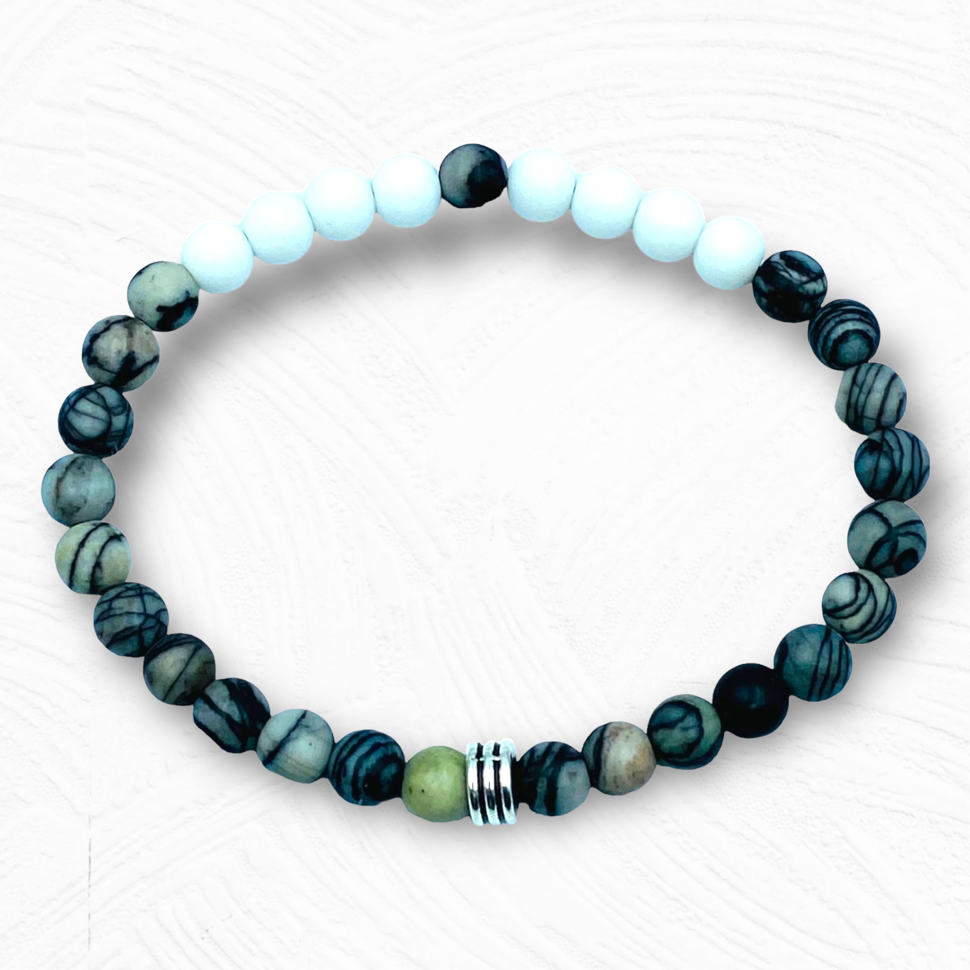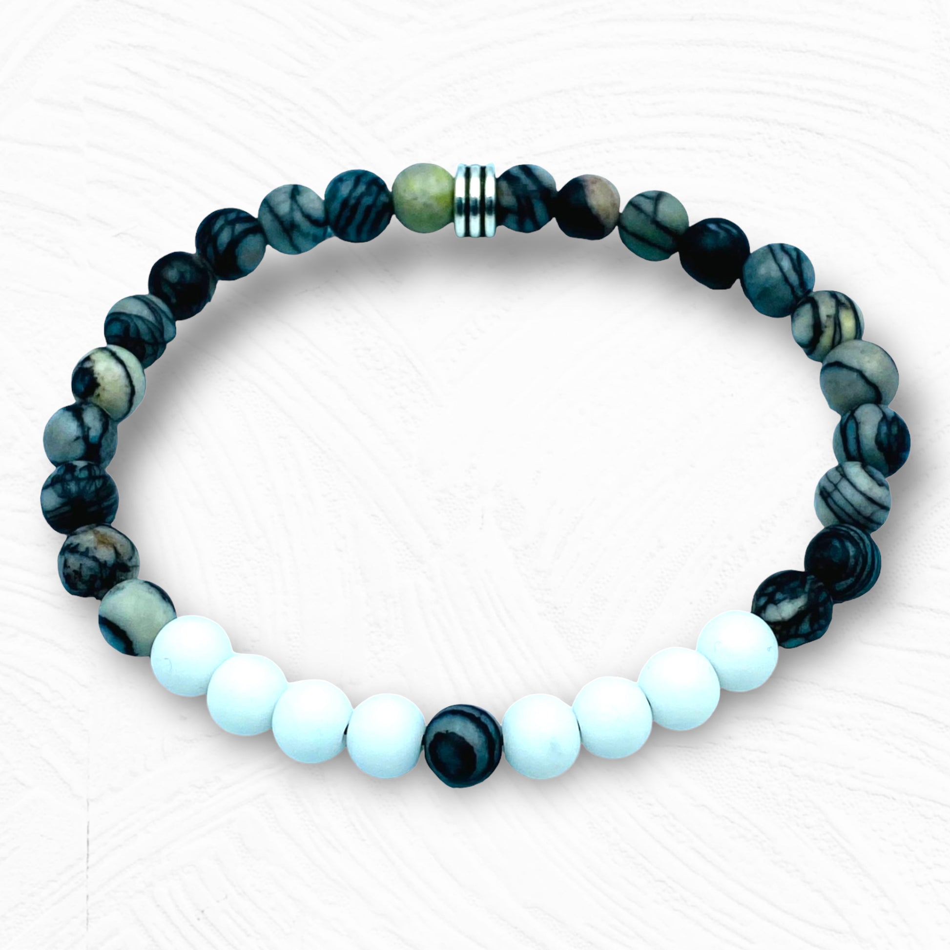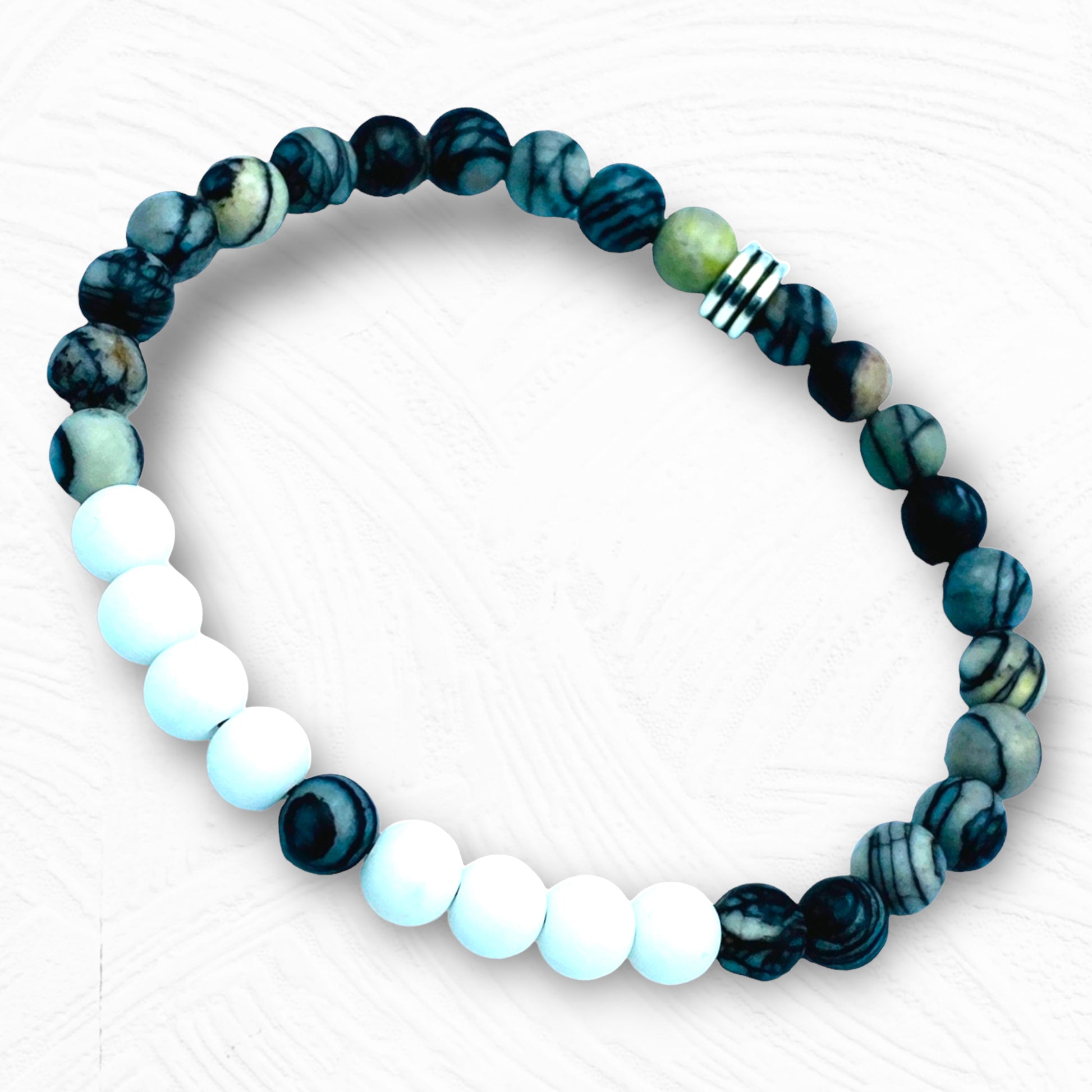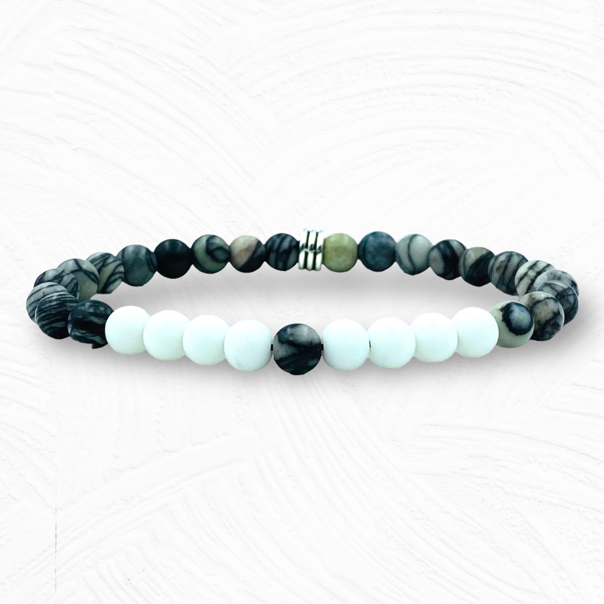 Piedra ágata mate Snow y ónix blanca mate. Estas piedras promueven la memoria, la calma y disipar todos los elementos internos perturbadores.
